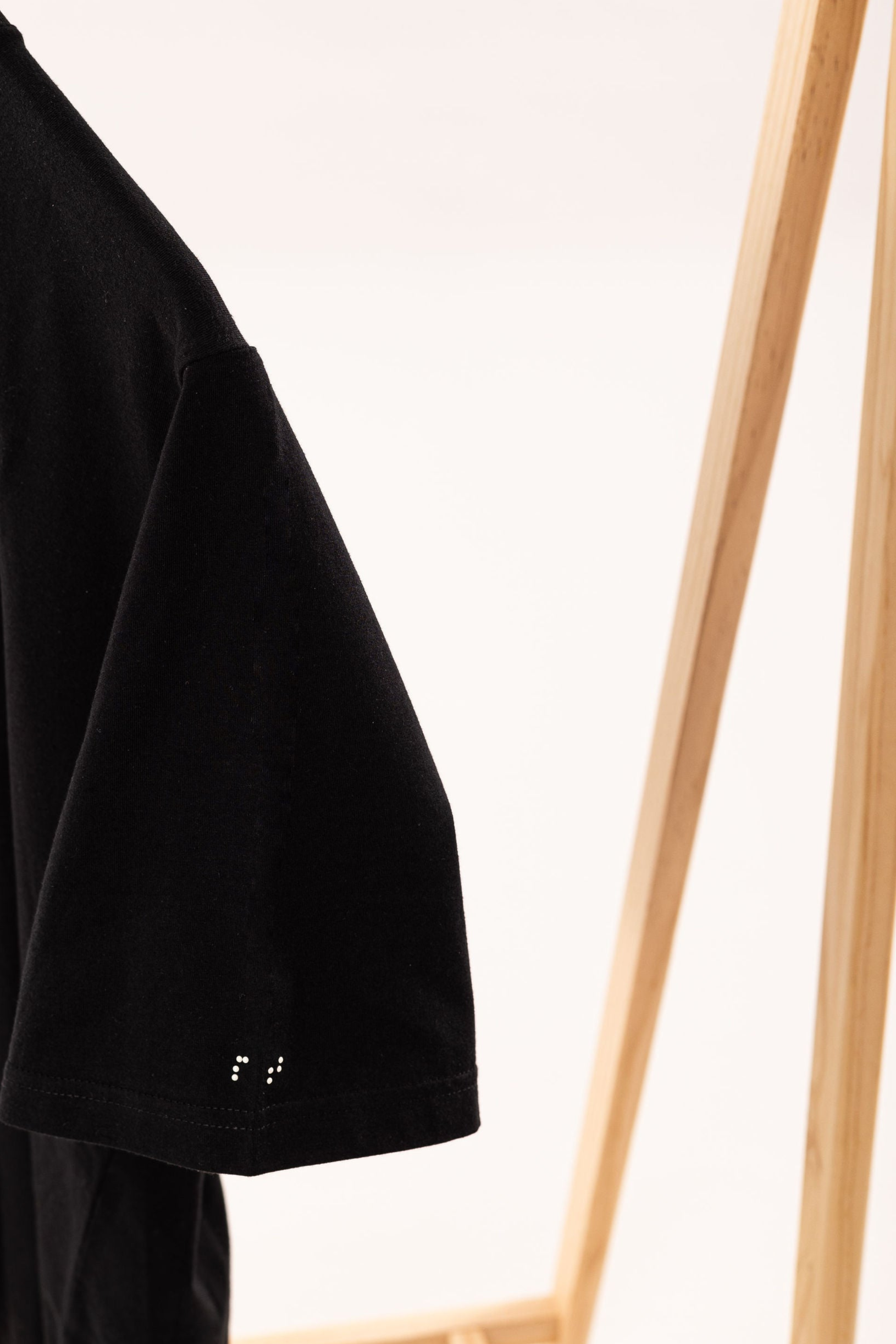 Será que temos a capacidade de pôr para trás das costas os nossos maus hábitos? A t-shirt HUG, com inscrições em braile na zona da nuca, mostra que podes ser sempre bondoso/a independentemente do passado.