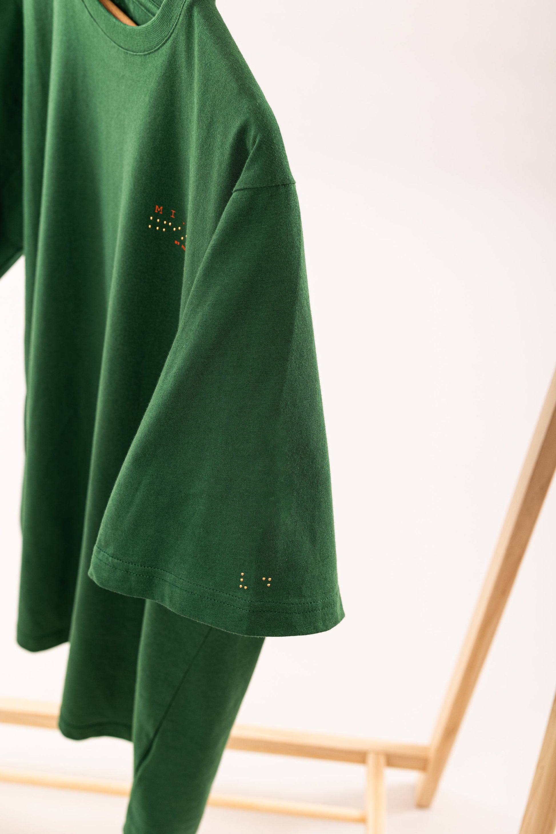 Para a “THE REAL GEMS COLLECTION”, decidimos adotar o tom esverdeado da esmeralda, por ser tão tranquilo como a própria Natureza: a casa de todos nós. Queremos partilhar com todos os mimoo’s a percepção de conforto, de amor e, no fundo, de lar: algo tão verde como a esperança num mundo mais sustentável. Assim, ALL LOVE e ALL HOME são os dois modelos escolhidos para a T-shirt GREEN EMER(ALL)D. A MI.MOO acredita que somos todos vizinhos num grande jardim a que chamamos Terra.